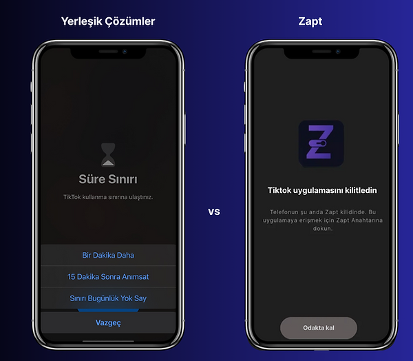 Hazır olduğunda telefonunu tekrar Zapt’a dokundurur ve uygulamalara erişimi geri alırsın; ekrana dönüşün de uzaklaşman kadar bilinçli olur.